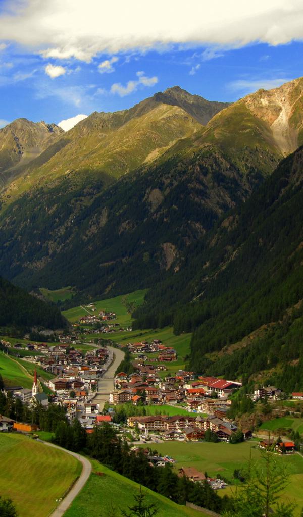 Обои Летняя панорама на горнолыжном курорте Зёльден, Австрия