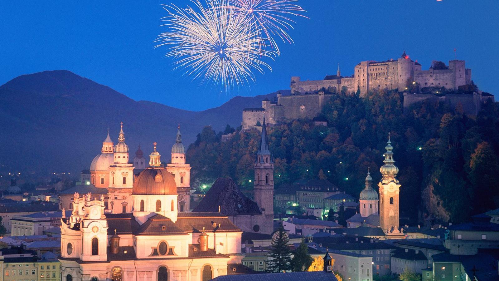 Обои Фейерверк в городе Зальцбург, Австрия