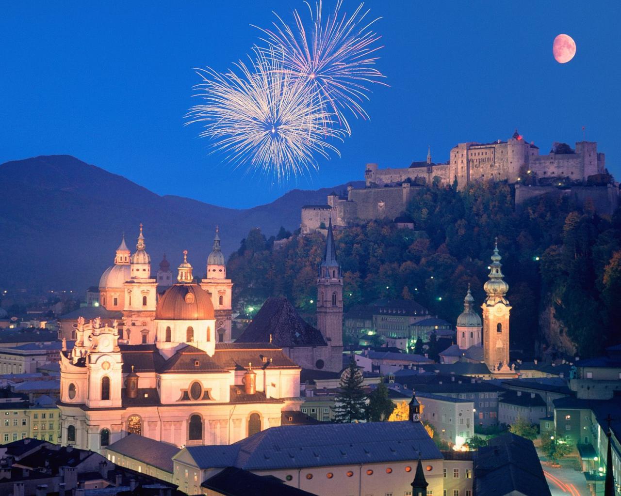 Обои Фейерверк в городе Зальцбург, Австрия
