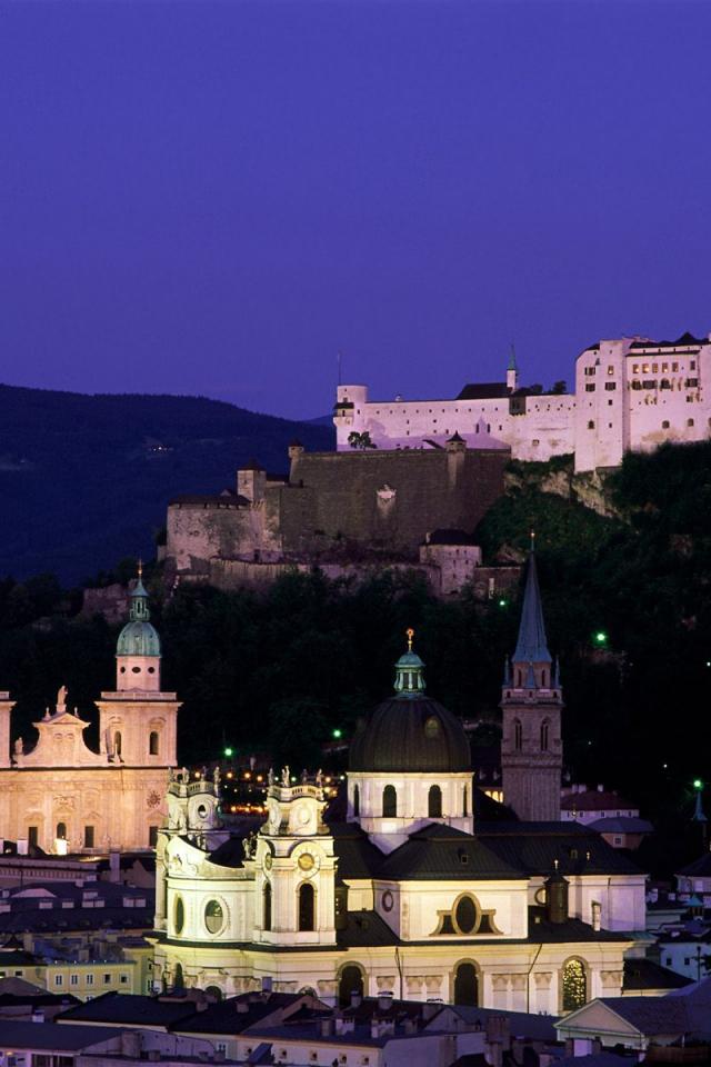 Обои Ночные огни в городе Зальцбург, Австрия
