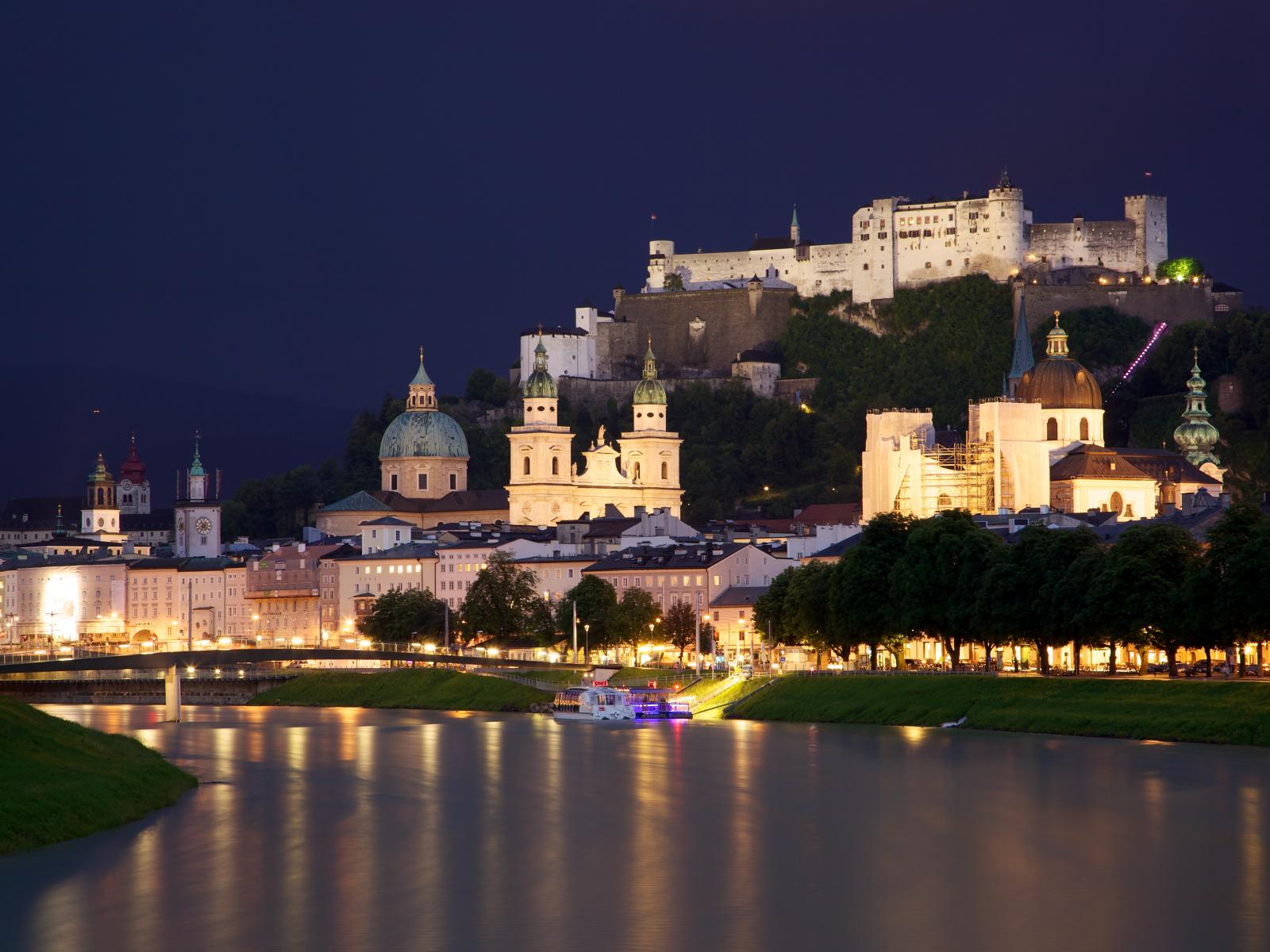Обои Крепость на холме в городе Зальцбург, Австрия