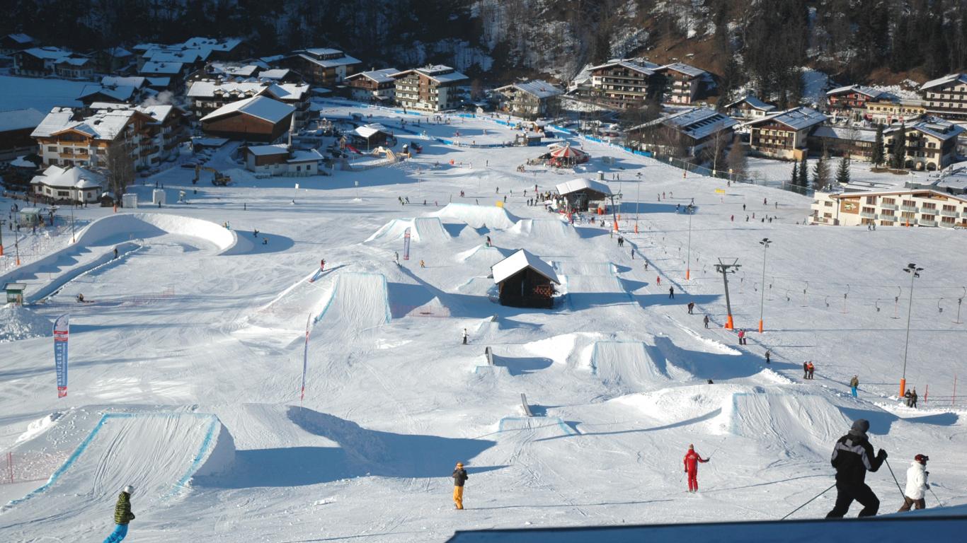 Обои Спуск на лыжах на горнолыжном курорте Заальбах Хинтерглем, Австрия
