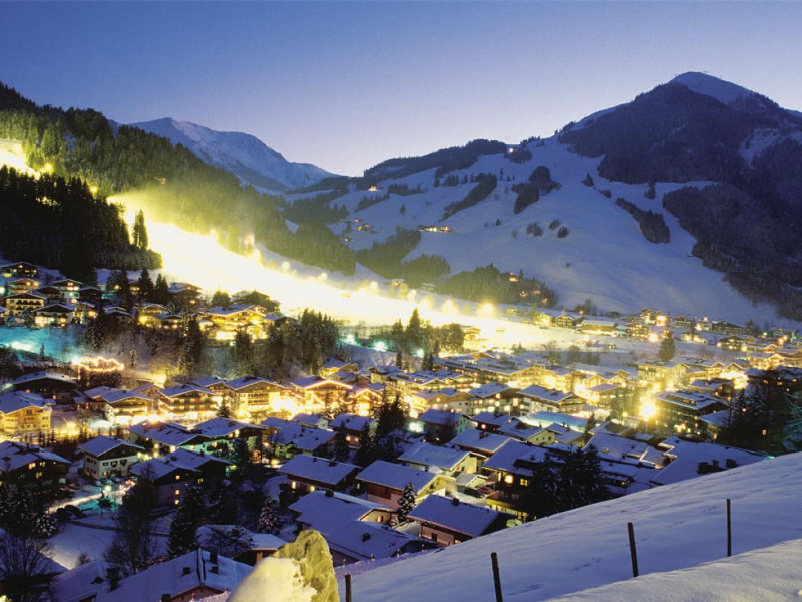 Обои Ночные огни на горнолыжном курорте Заальбах Хинтерглем, Австрия