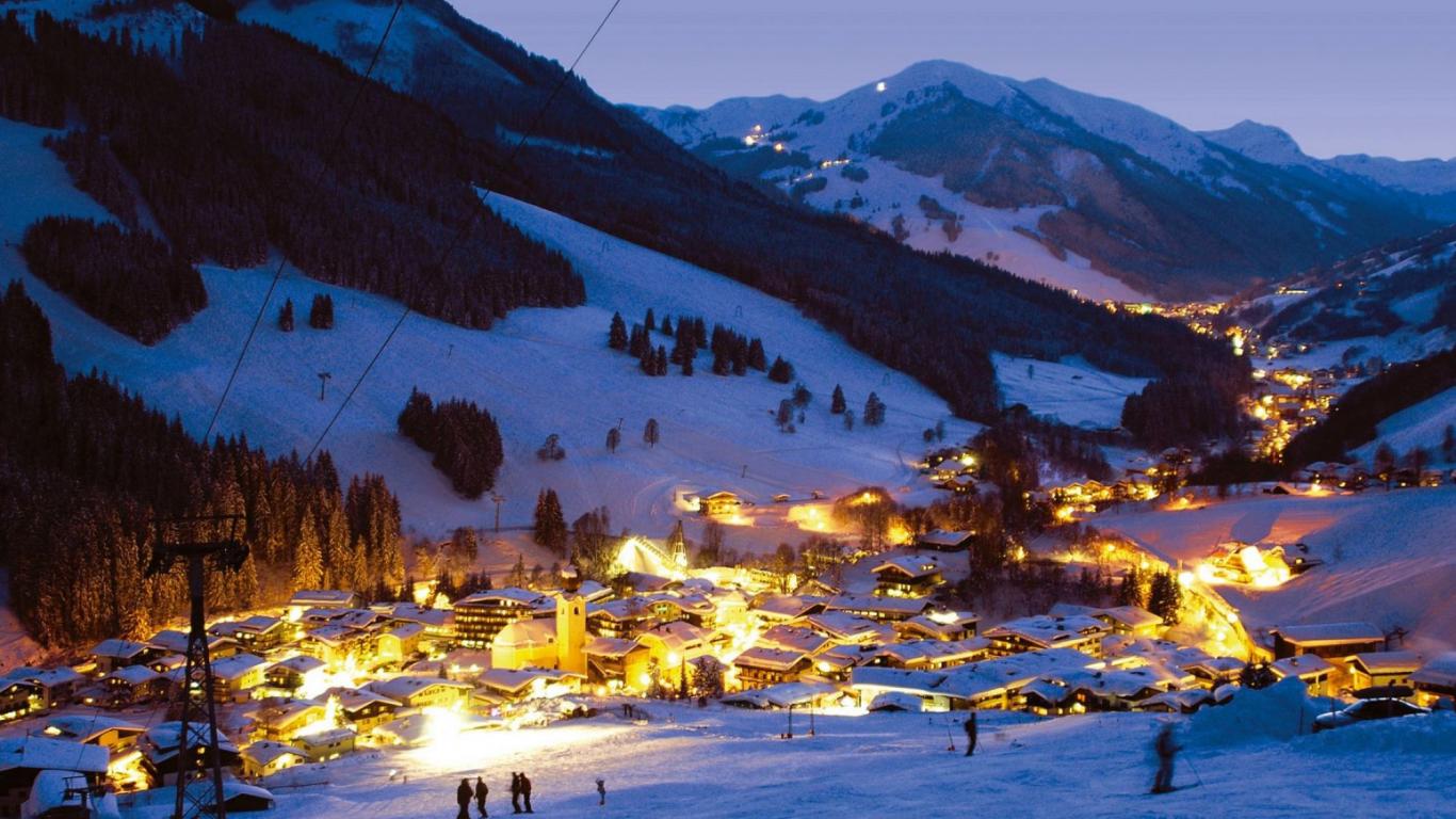 Обои Вечер на горнолыжном курорте Заальбах Хинтерглем, Австрия