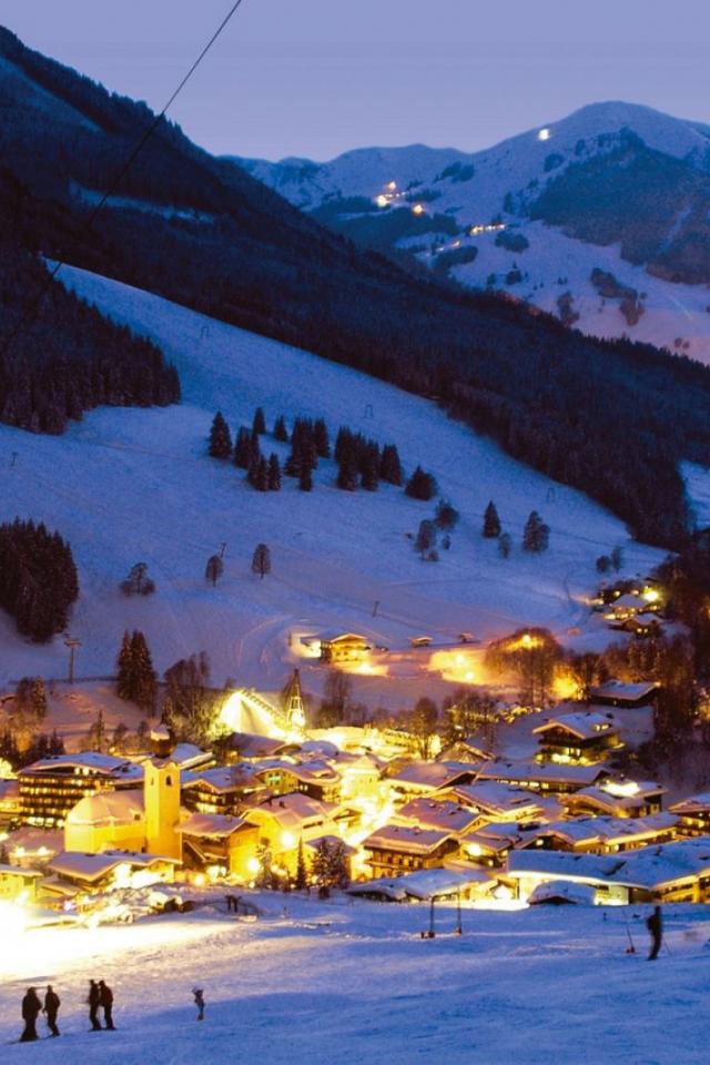 Обои Вечер на горнолыжном курорте Заальбах Хинтерглем, Австрия
