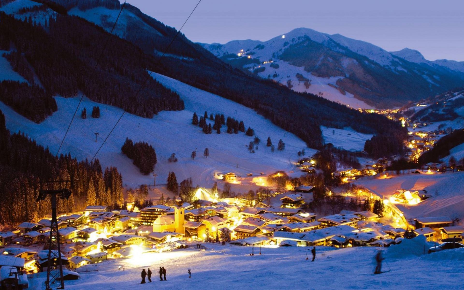 Обои Вечер на горнолыжном курорте Заальбах Хинтерглем, Австрия