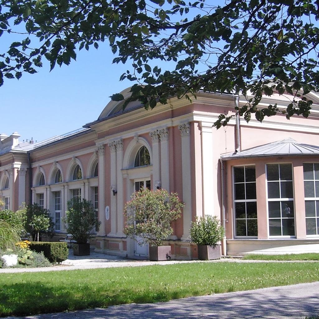 Обои Розовое здание в парке на курорте Бад Халль, Австрия