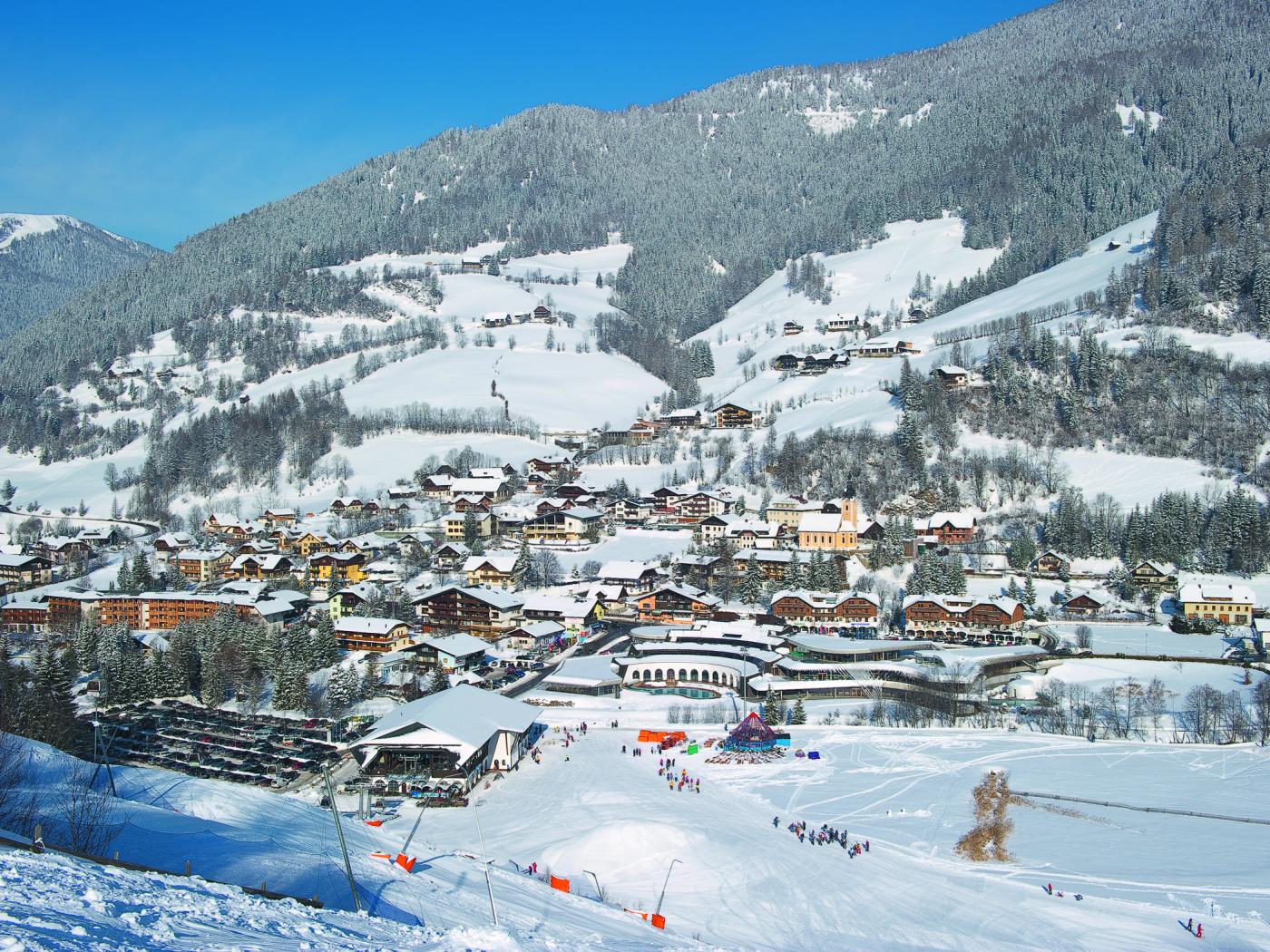 Обои Панорама на горнолыжном курорте Бад Кляйнкирххайм, Австрия