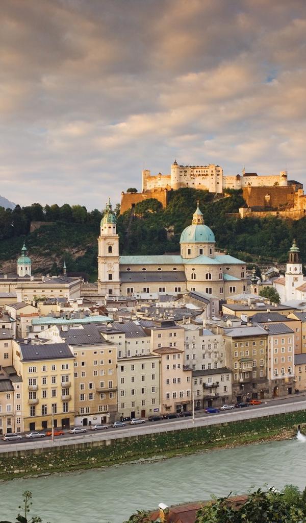 Обои Колокольня на фоне города Зальцбург, Австрия