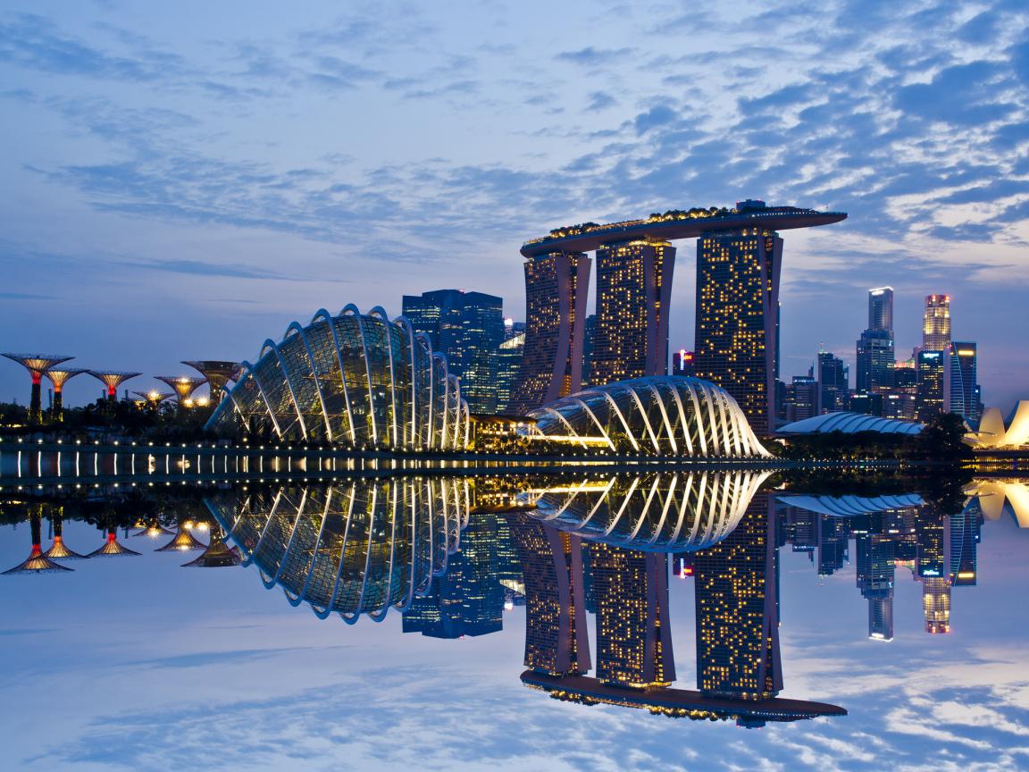 Обои Сингапур, Огни, Отражение, Небоскреб