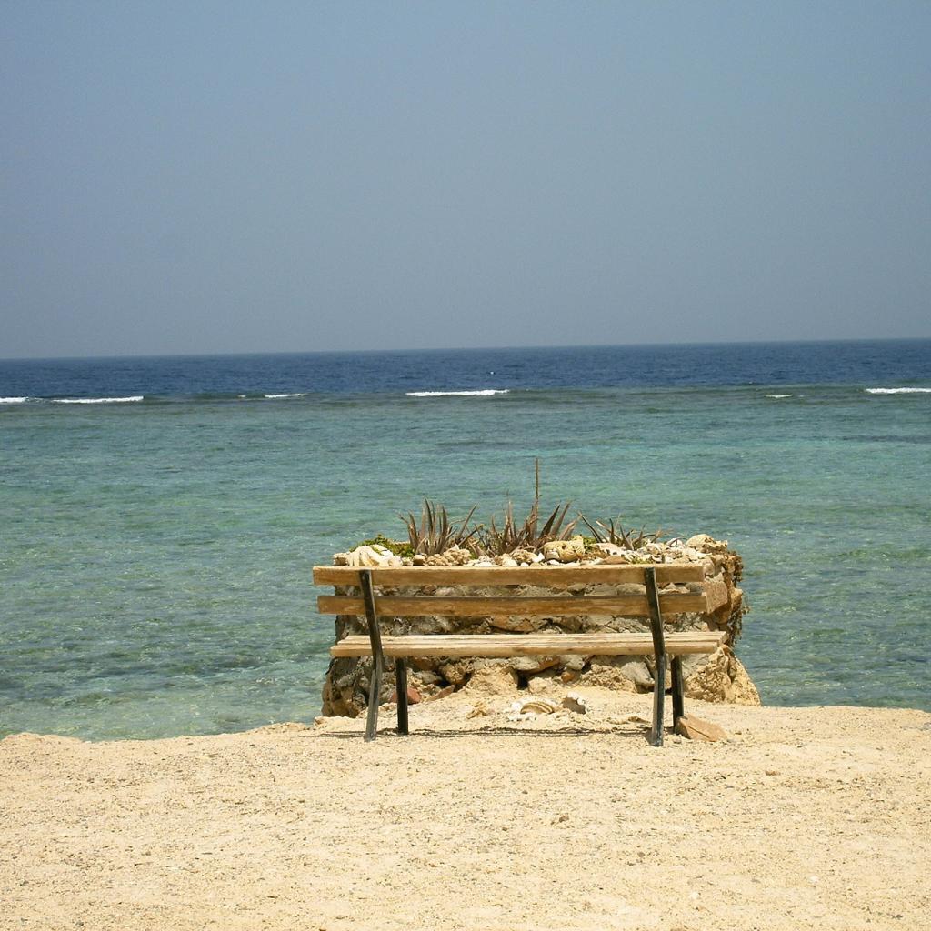 Обои Лавка на пляже на курорте Эль Кусейр, Египет