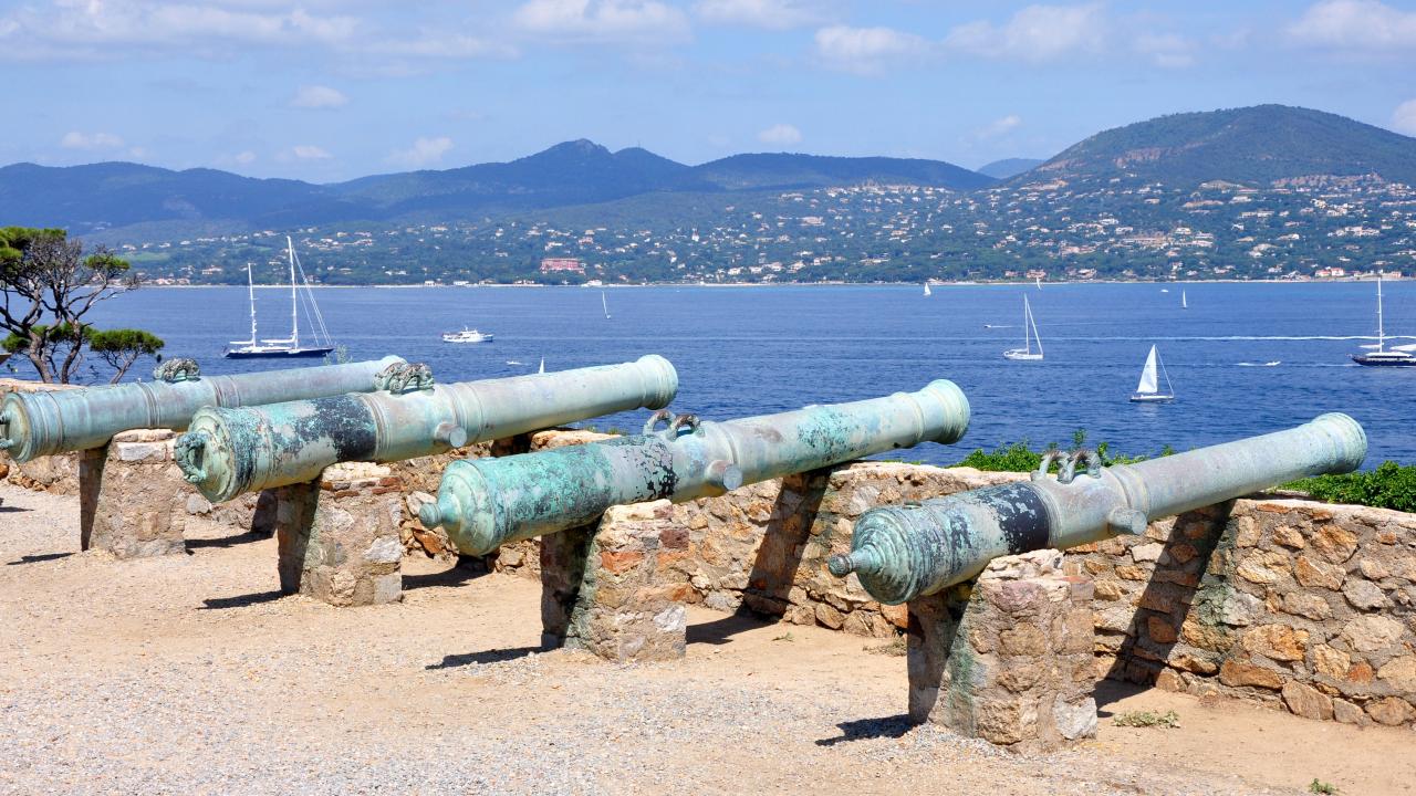 Обои Пушки на набережной на курорте Сен-Тропе, Франция