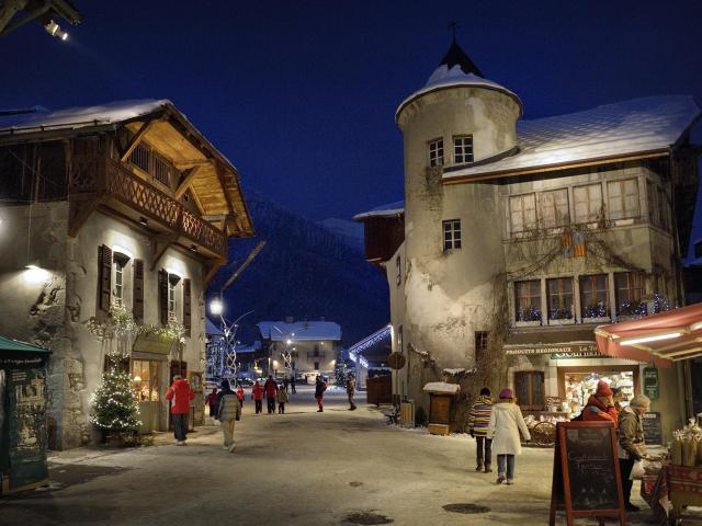 Обои Вечерние огни на горнолыжном курорте Самоен, Франция
