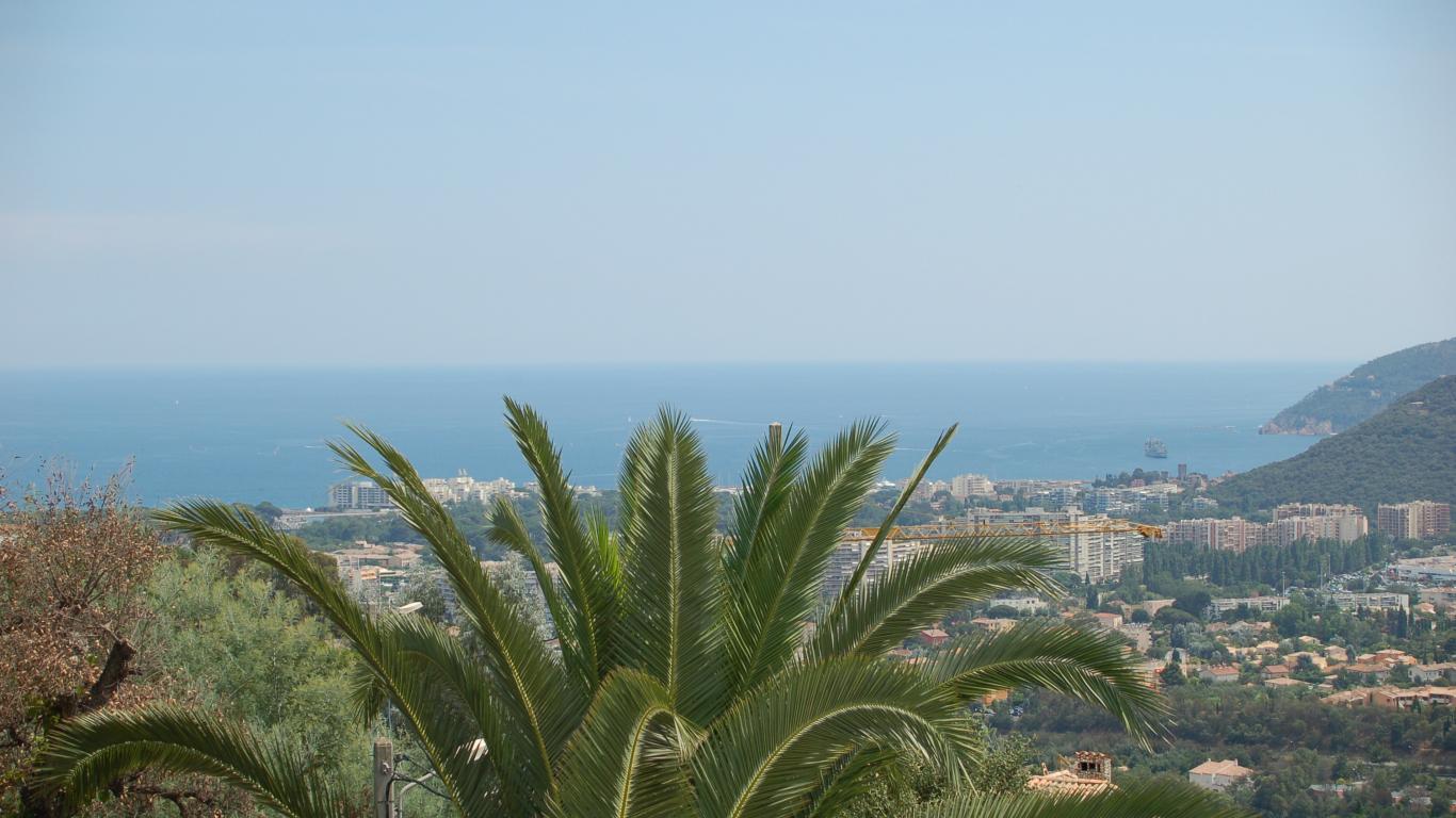 Обои Пальма на фоне города на курорте Манделье ля Напуль, Франция