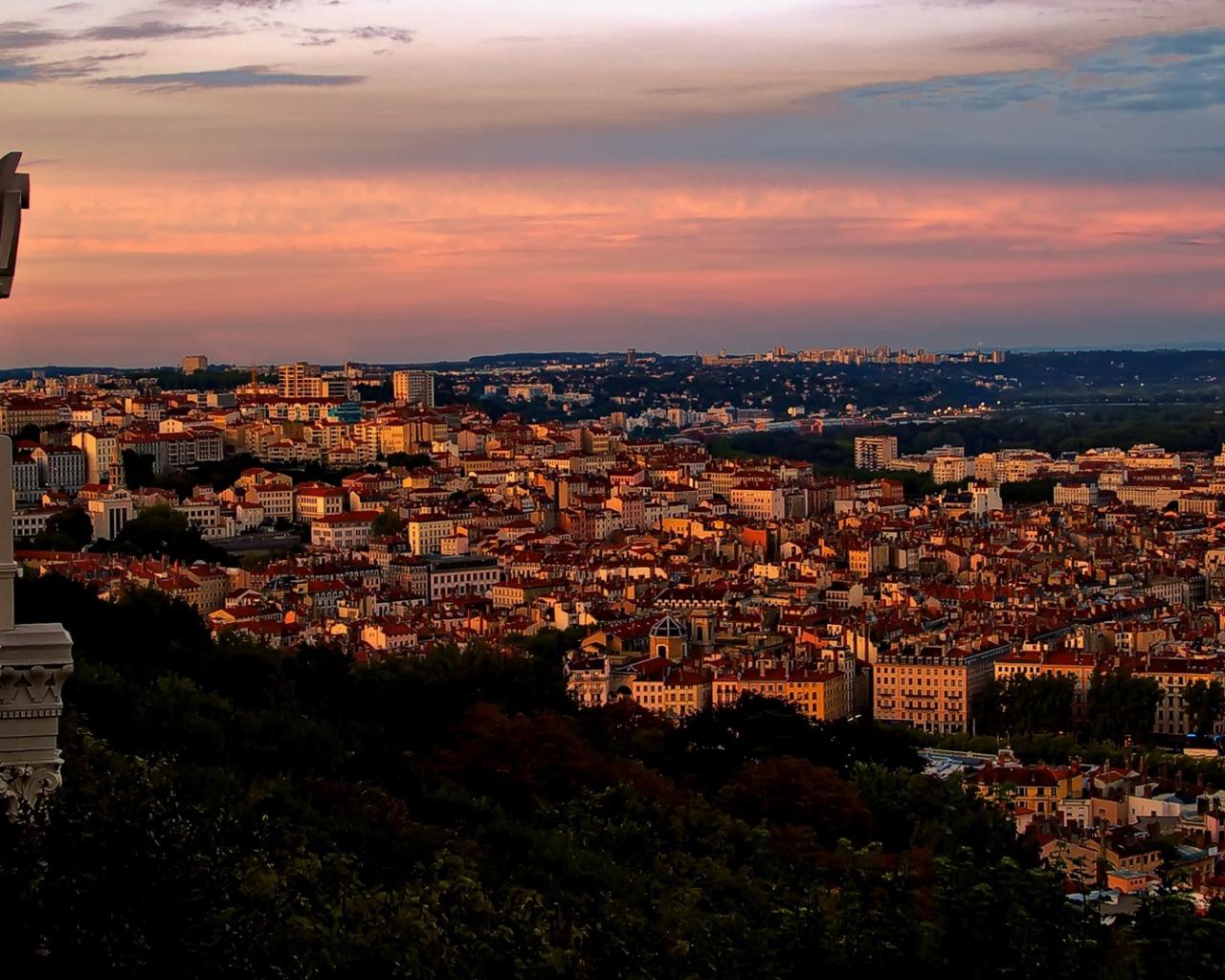 Обои Закат в городе Лион, Франция