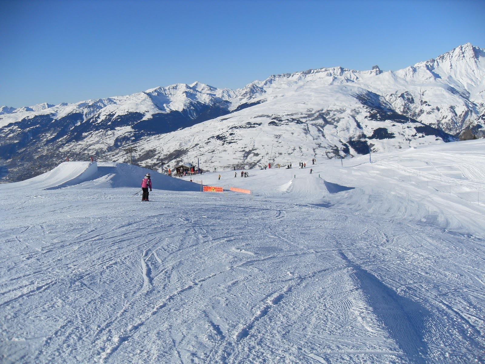 Обои Спуск на лыжах на горнолыжном курорте Лез Арк, Франция