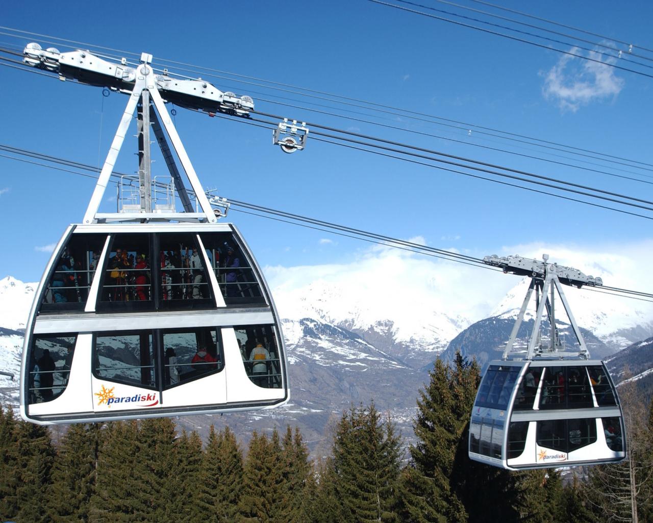 Обои Подъемник на горнолыжном курорте Лез Арк, Франция