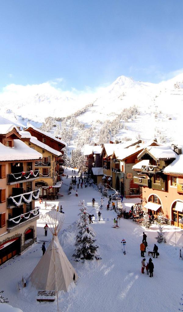 Обои Городская улица на горнолыжном курорте Лез Арк, Франция