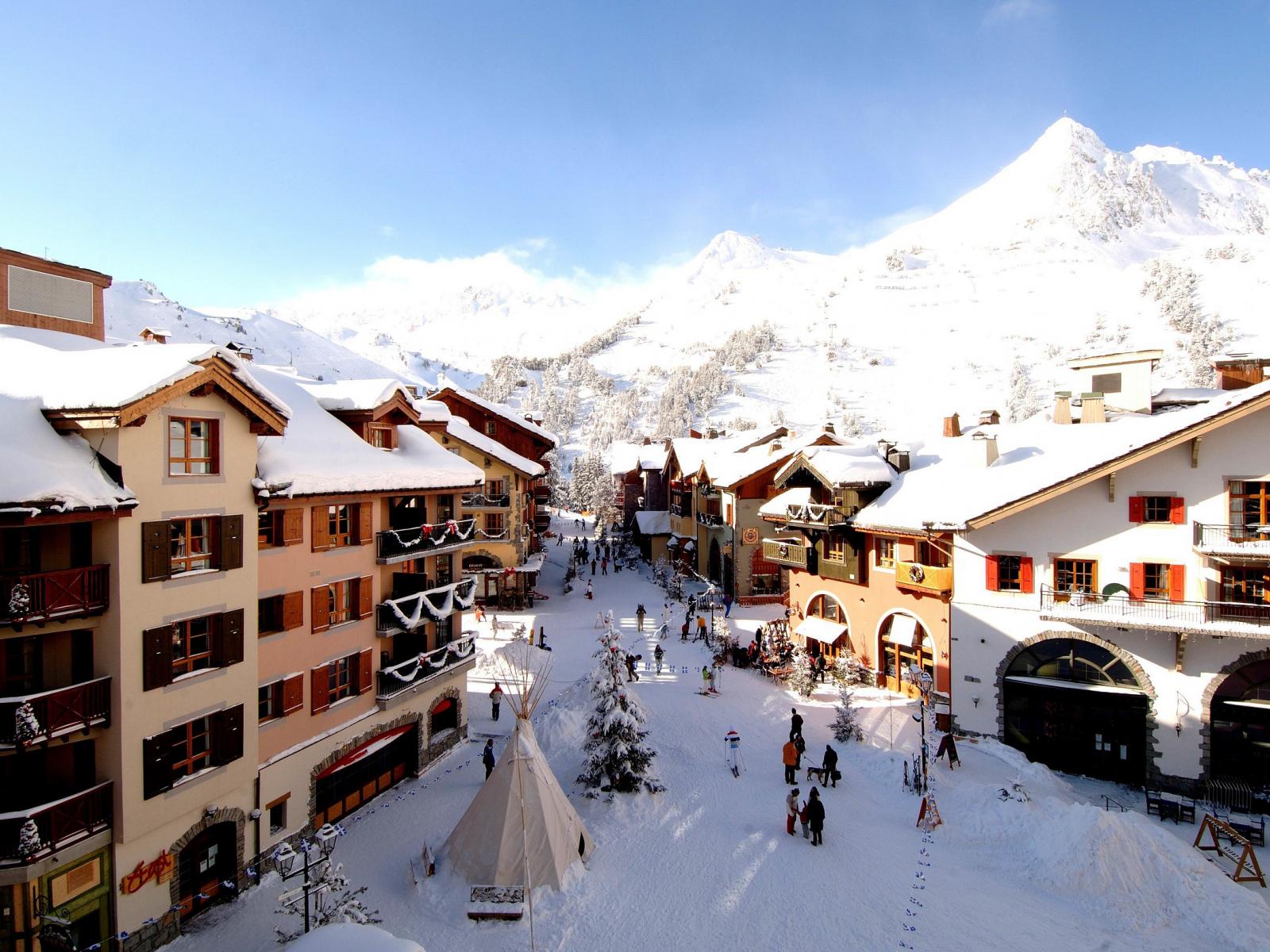 Обои Городская улица на горнолыжном курорте Лез Арк, Франция