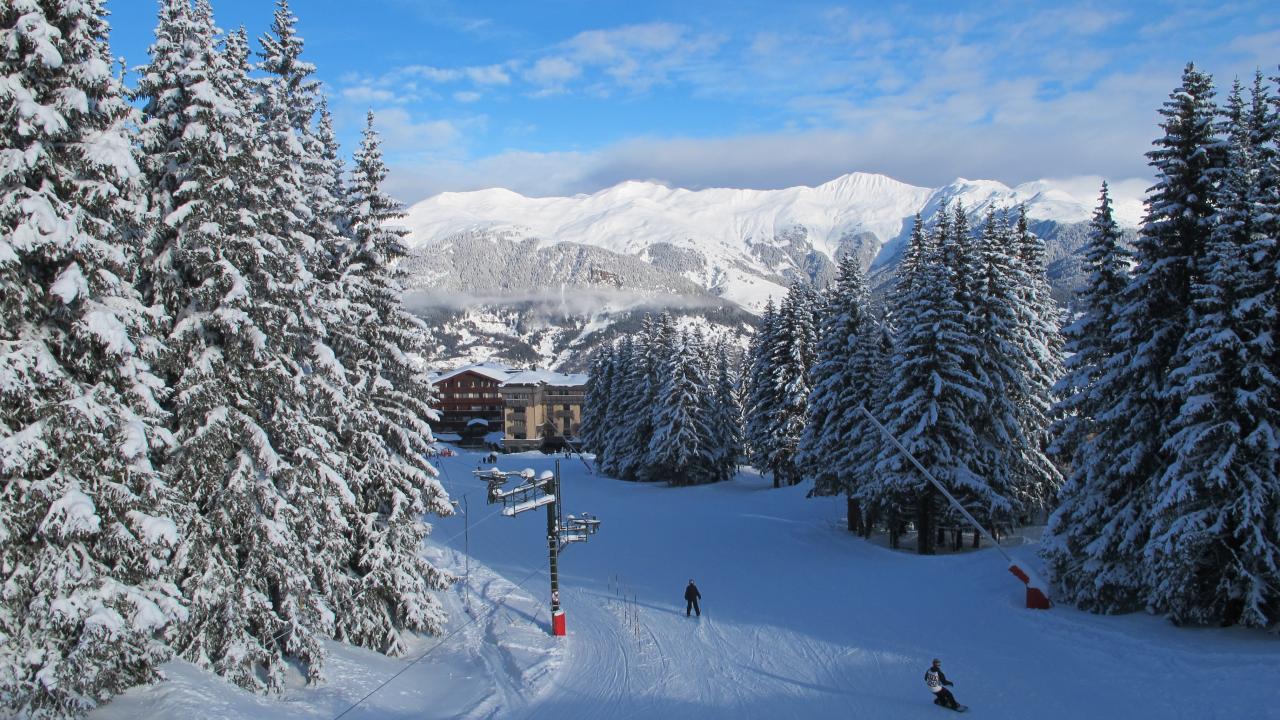 Обои Спуск на лыжах на горнолыжном курорте Куршевель, Франция