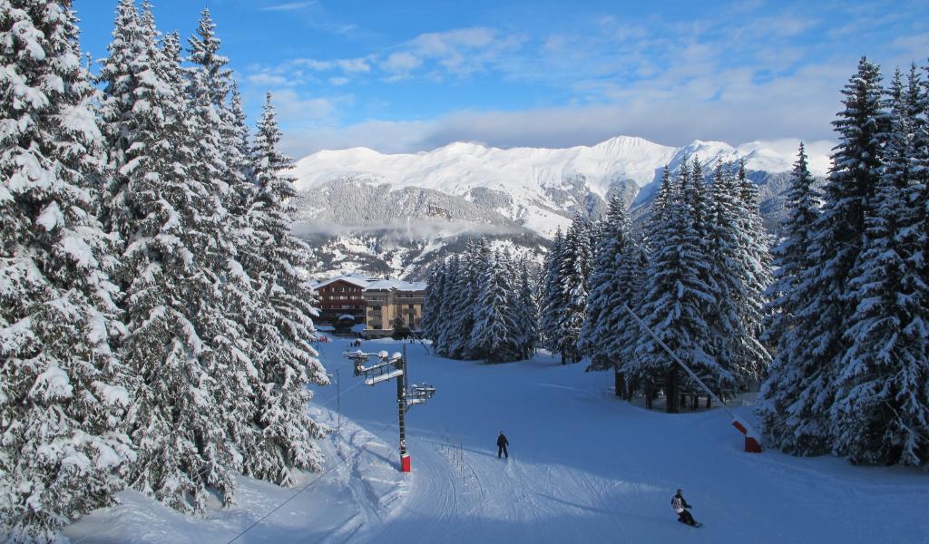 Обои Спуск на лыжах на горнолыжном курорте Куршевель, Франция