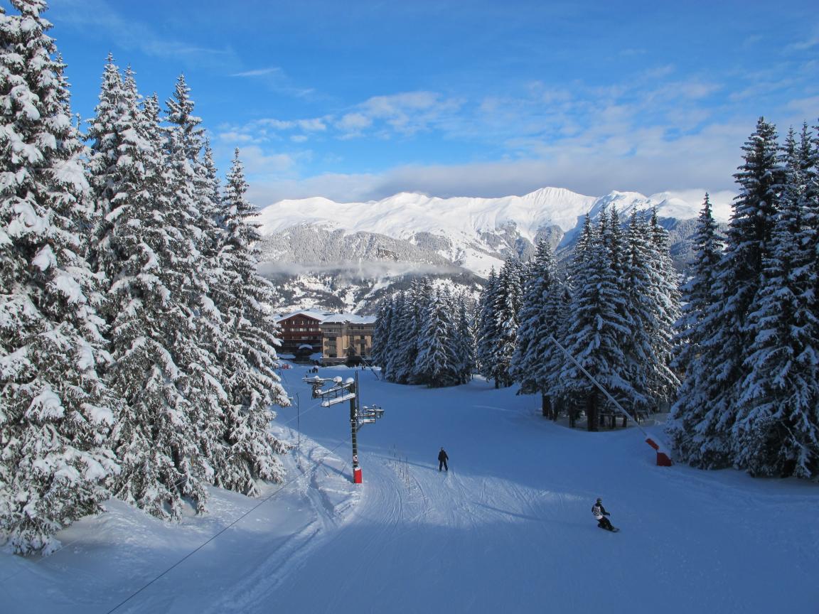 Обои Спуск на лыжах на горнолыжном курорте Куршевель, Франция
