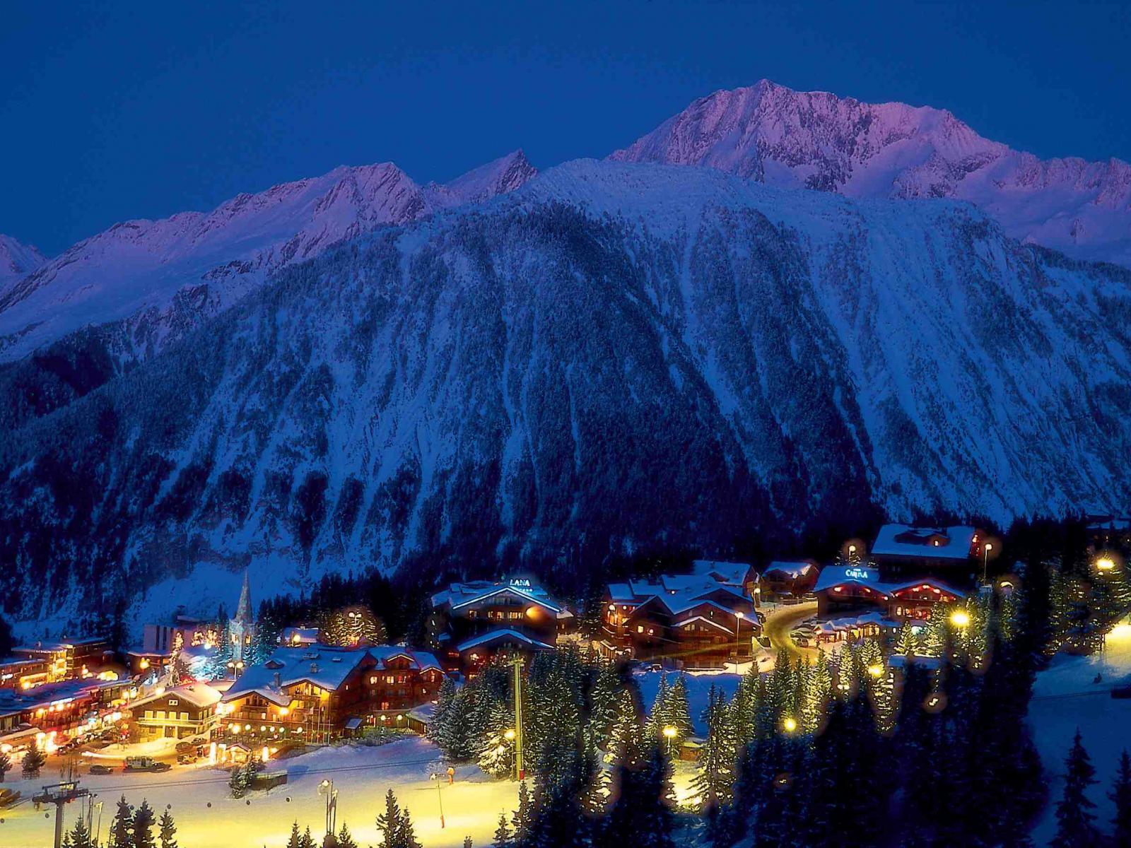 Обои Ночные огни на горнолыжном курорте Куршевель, Франция