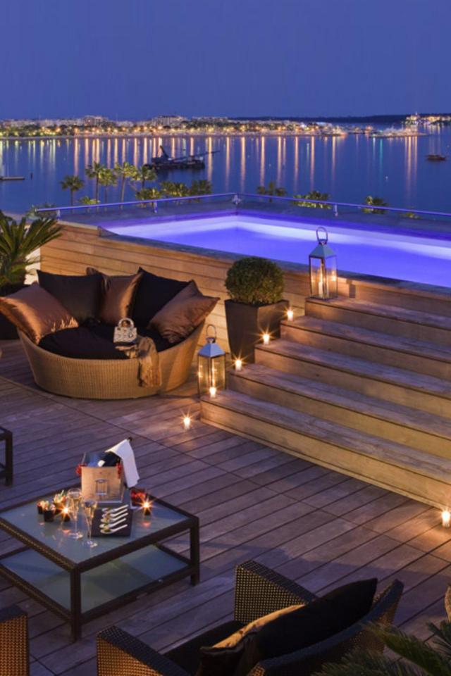 Обои Кафе на побережье в Каннах, Франция
