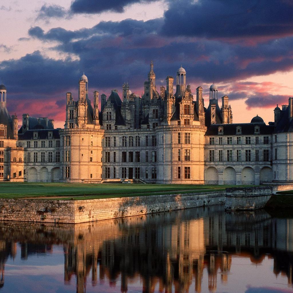 Обои Закат над замком в Луаре, Франция
