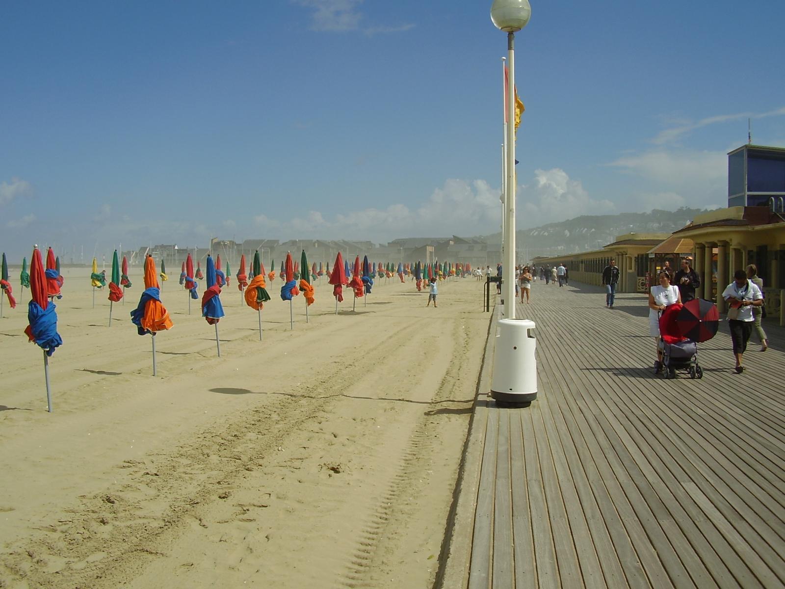 Обои Прогулка по набережной на курорте Довиль, Франция