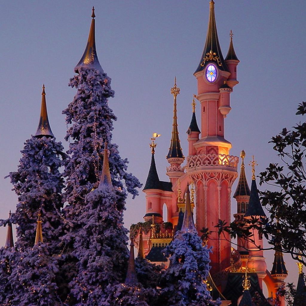 Обои Заснеженные ели в Диснейленде, Франция