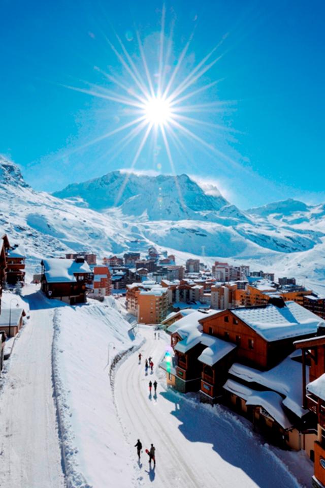 Обои Солнце над городом на горнолыжном курорте Валь-Торанс, Франция