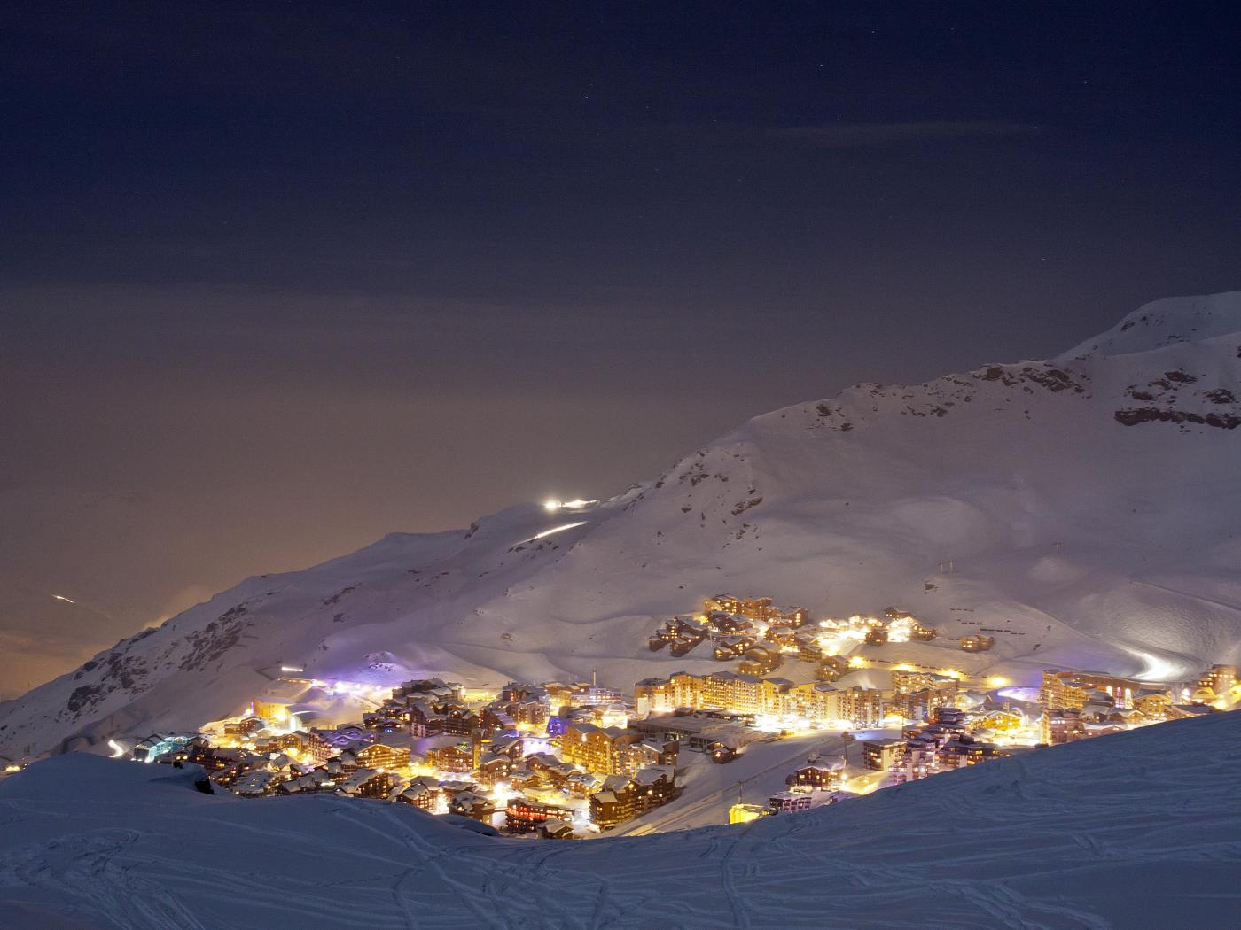 Обои Ночные огни на горнолыжном курорте Валь-Торанс, Франция
