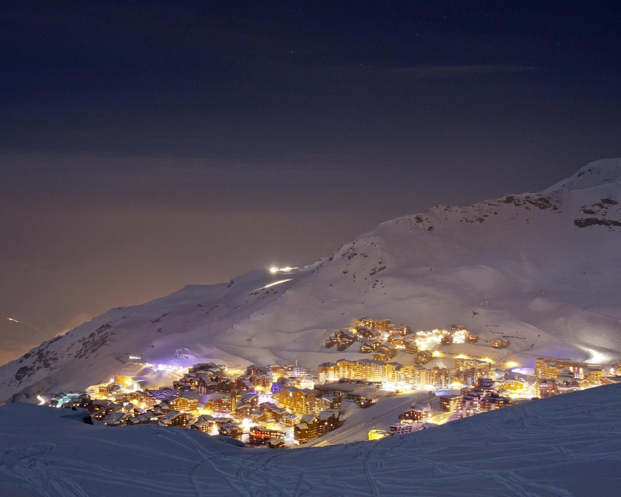 Обои Ночные огни на горнолыжном курорте Валь-Торанс, Франция