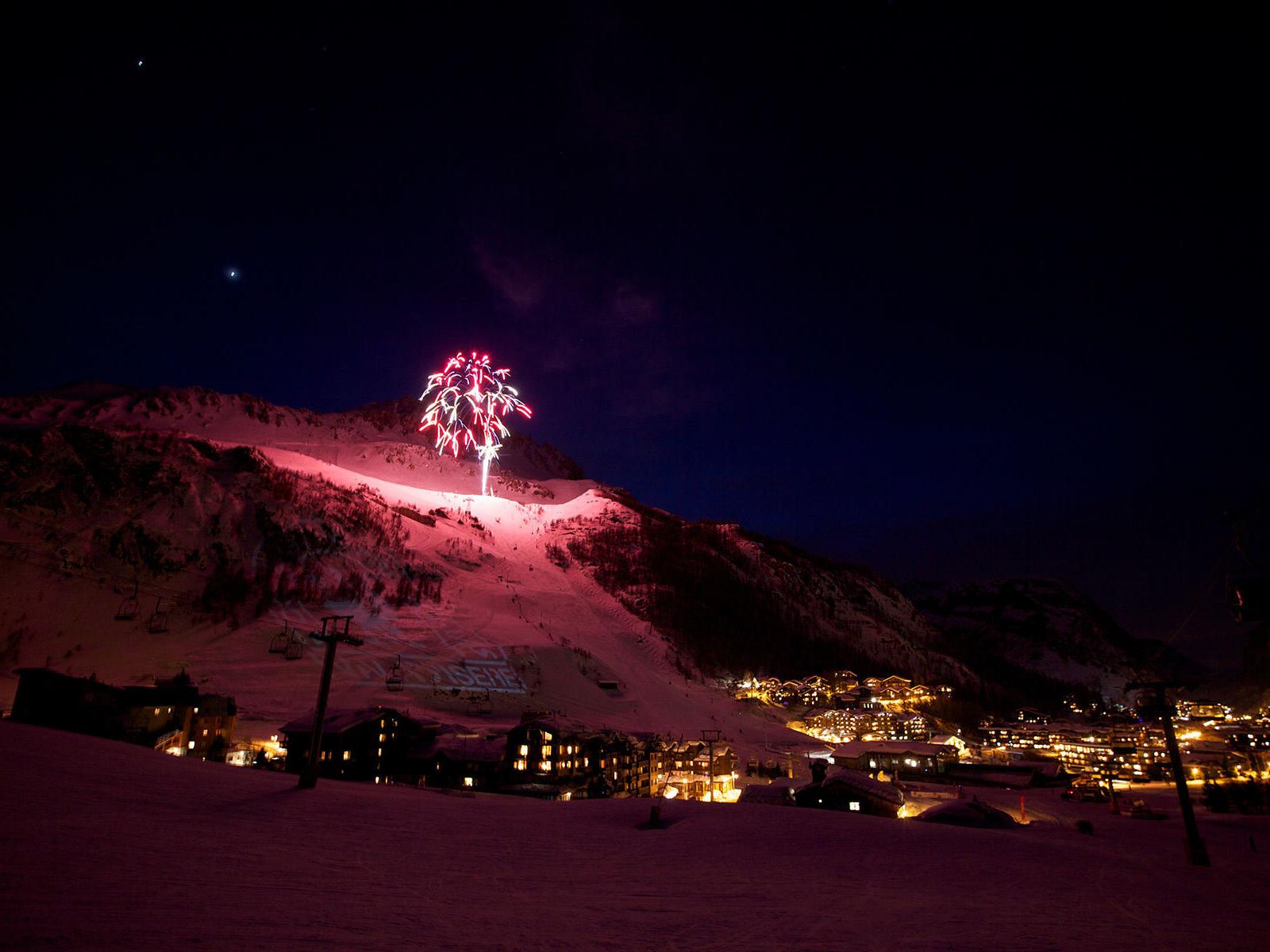 Обои Фейерверк на горнолыжном курорте Валь д`Изер, Франция