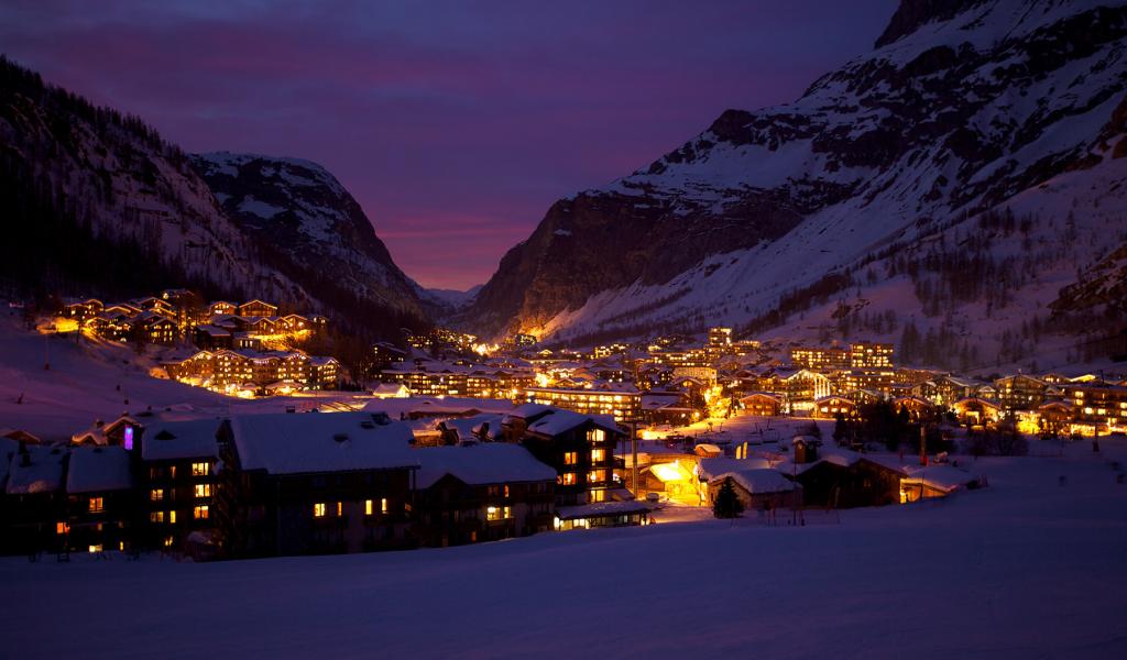 Обои Ночные огни на горнолыжном курорте Валь д`Изер, Франция