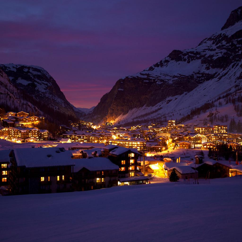 Обои Ночные огни на горнолыжном курорте Валь д`Изер, Франция