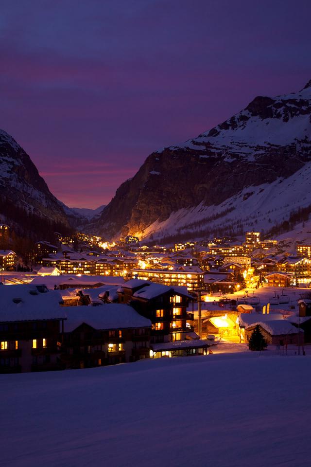 Обои Ночные огни на горнолыжном курорте Валь д`Изер, Франция