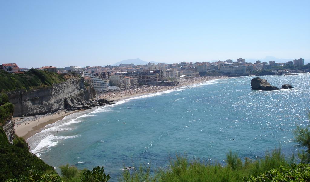 Обои Скалы у берега на курорте Биарриц, Франция