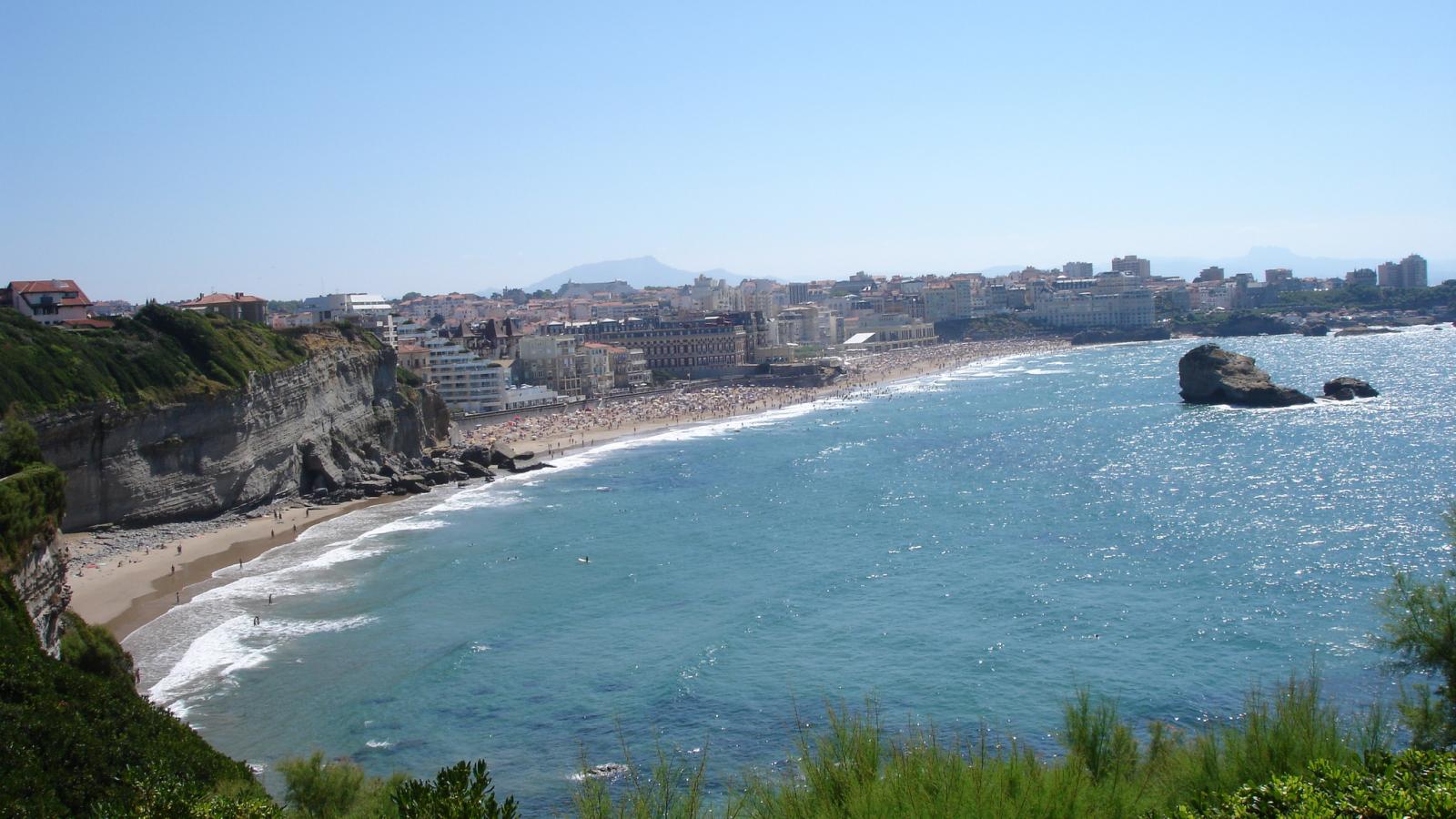 Обои Скалы у берега на курорте Биарриц, Франция