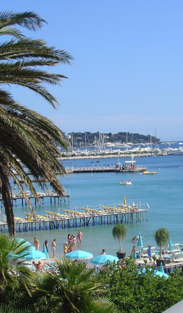 Обои Пальма на фоне залива на курорте Антибы, Франция