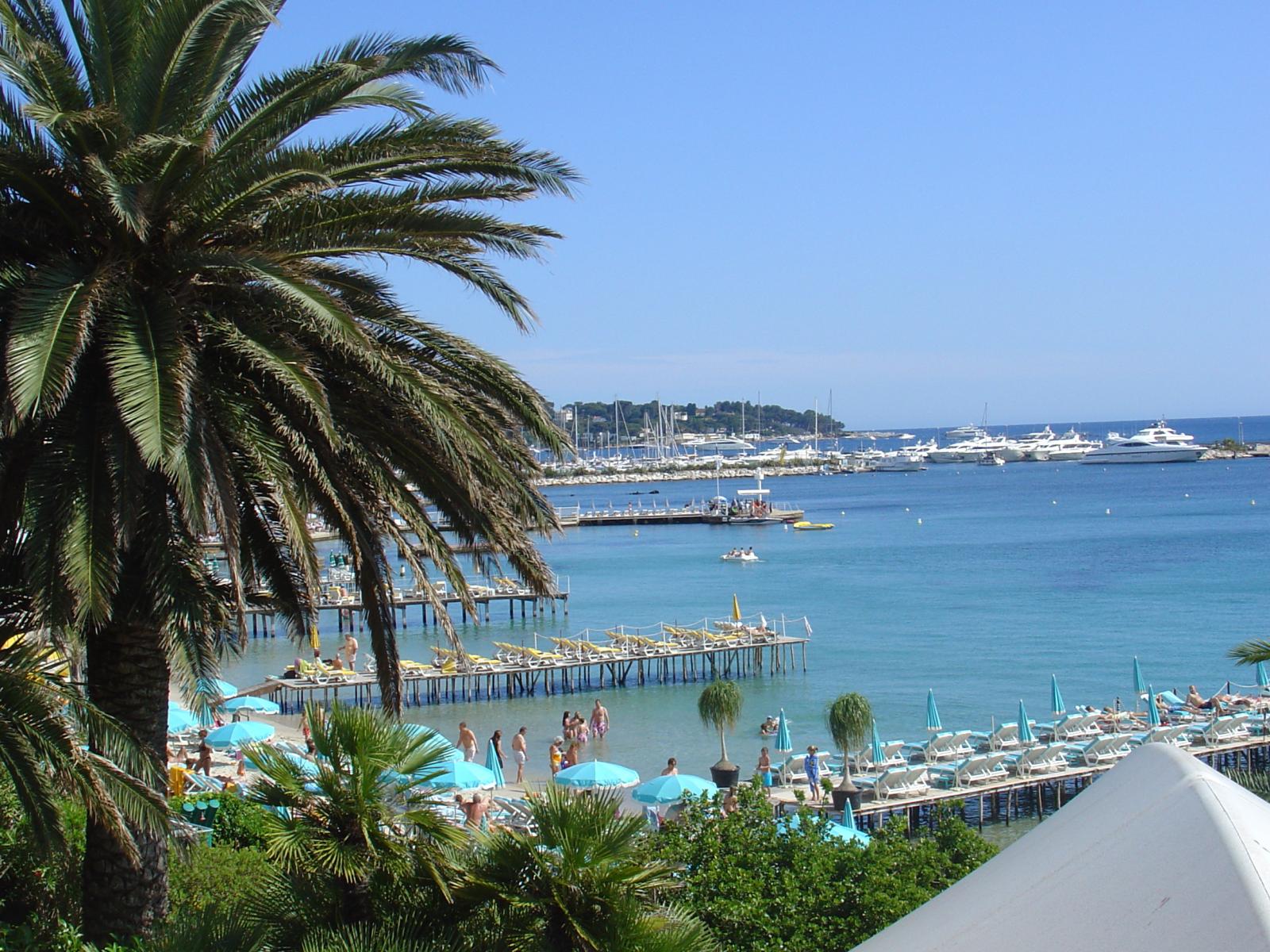 Обои Пальма на фоне залива на курорте Антибы, Франция