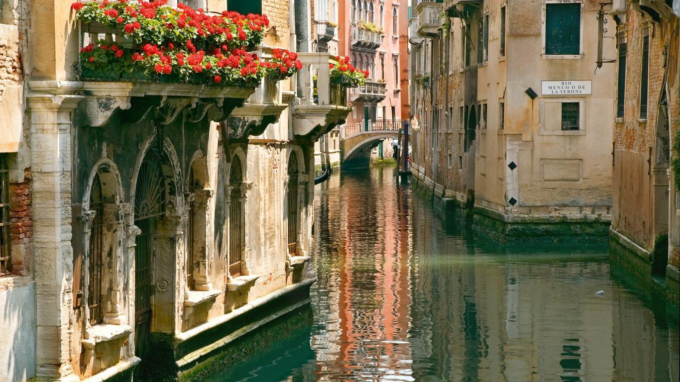 Обои Цветы на балконе в городе Аннеси, Франция