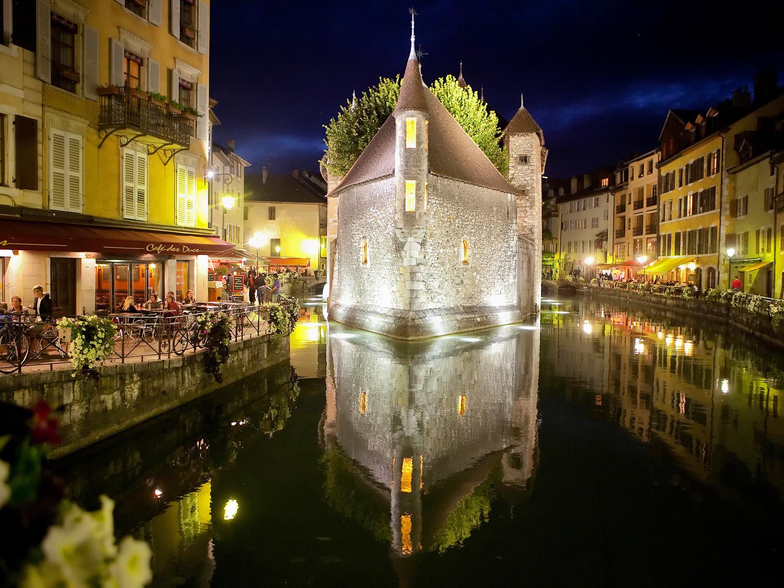 Обои Ночные огни в городе Аннеси, Франция