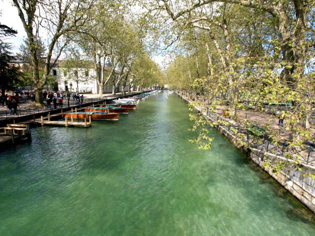 Обои Лодки у набережной в городе Аннеси, Франция