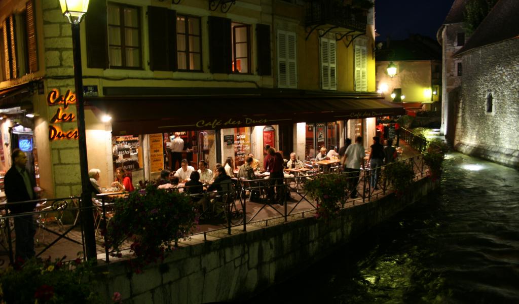 Обои Кафе на набережной в городе Аннеси, Франция