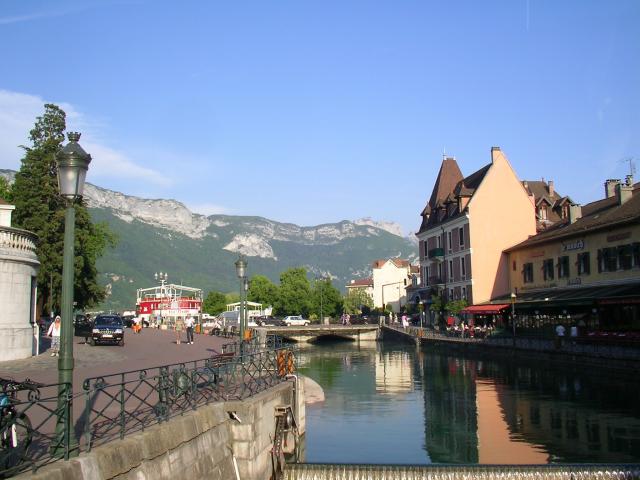 Обои Канал на фоне гор в городе Аннеси, Франция