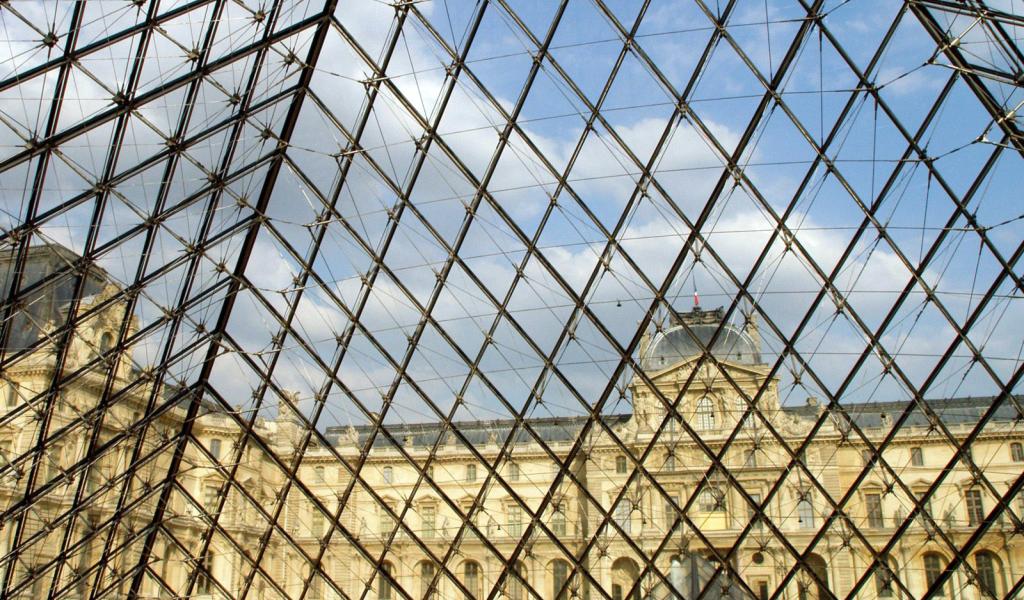 Обои Пирамида музей Лувр Париж