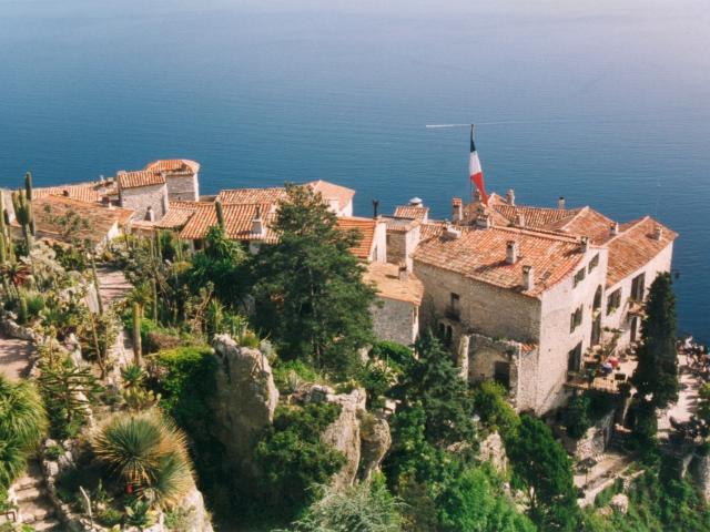 Обои Дома на фоне моря на курорте Эз, Франция