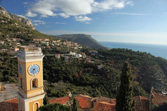 Обои Башня с часами на курорте Эз, Франция